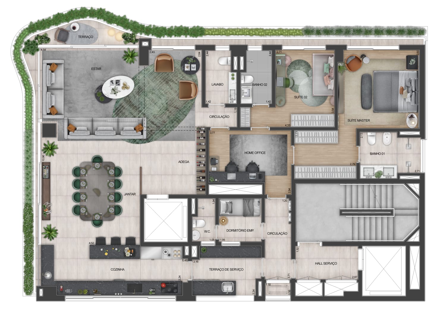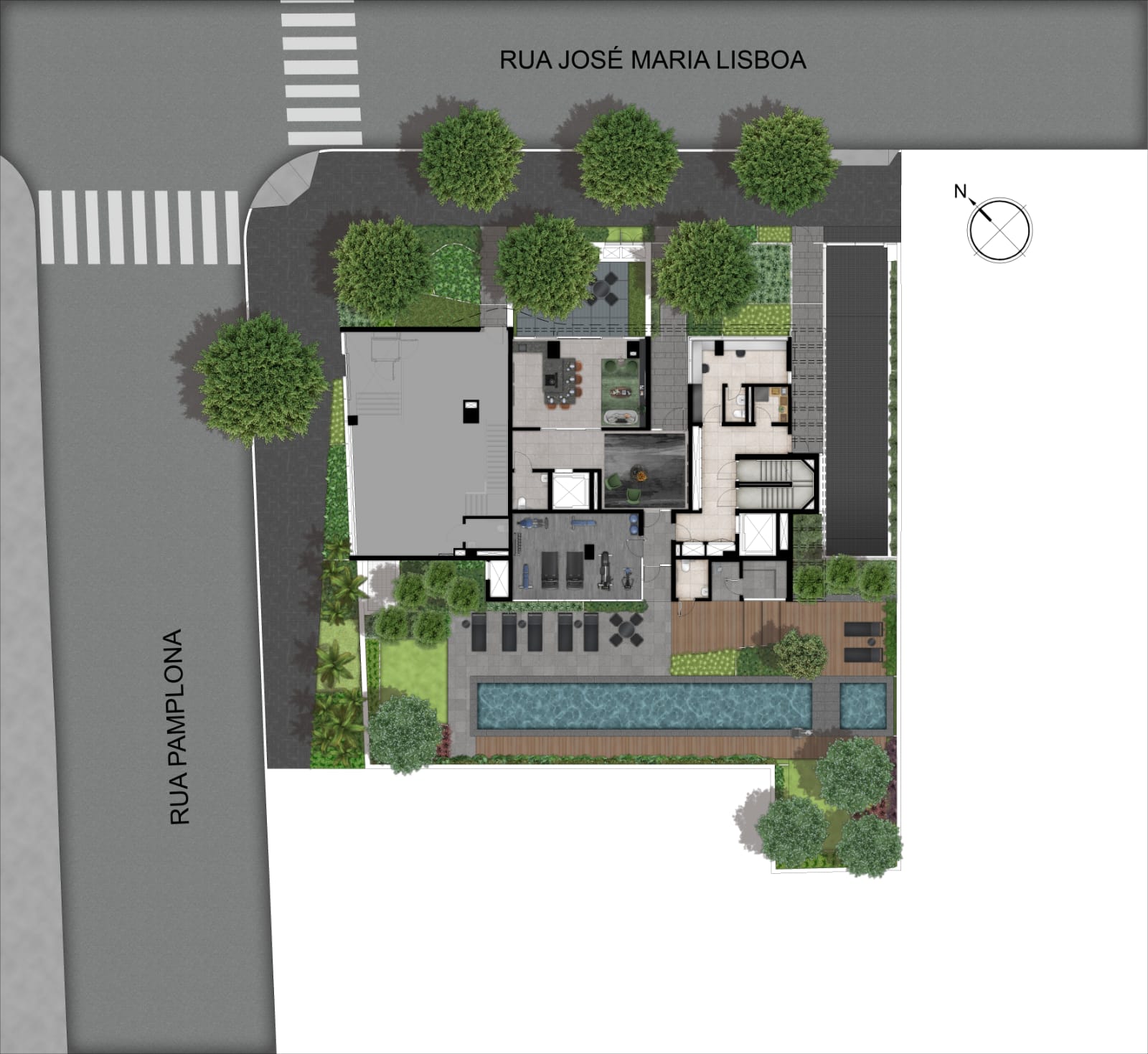 Áreas de acesso exclusivas: Entrada social e de serviço independentes, além de acesso exclusivo para veículos.