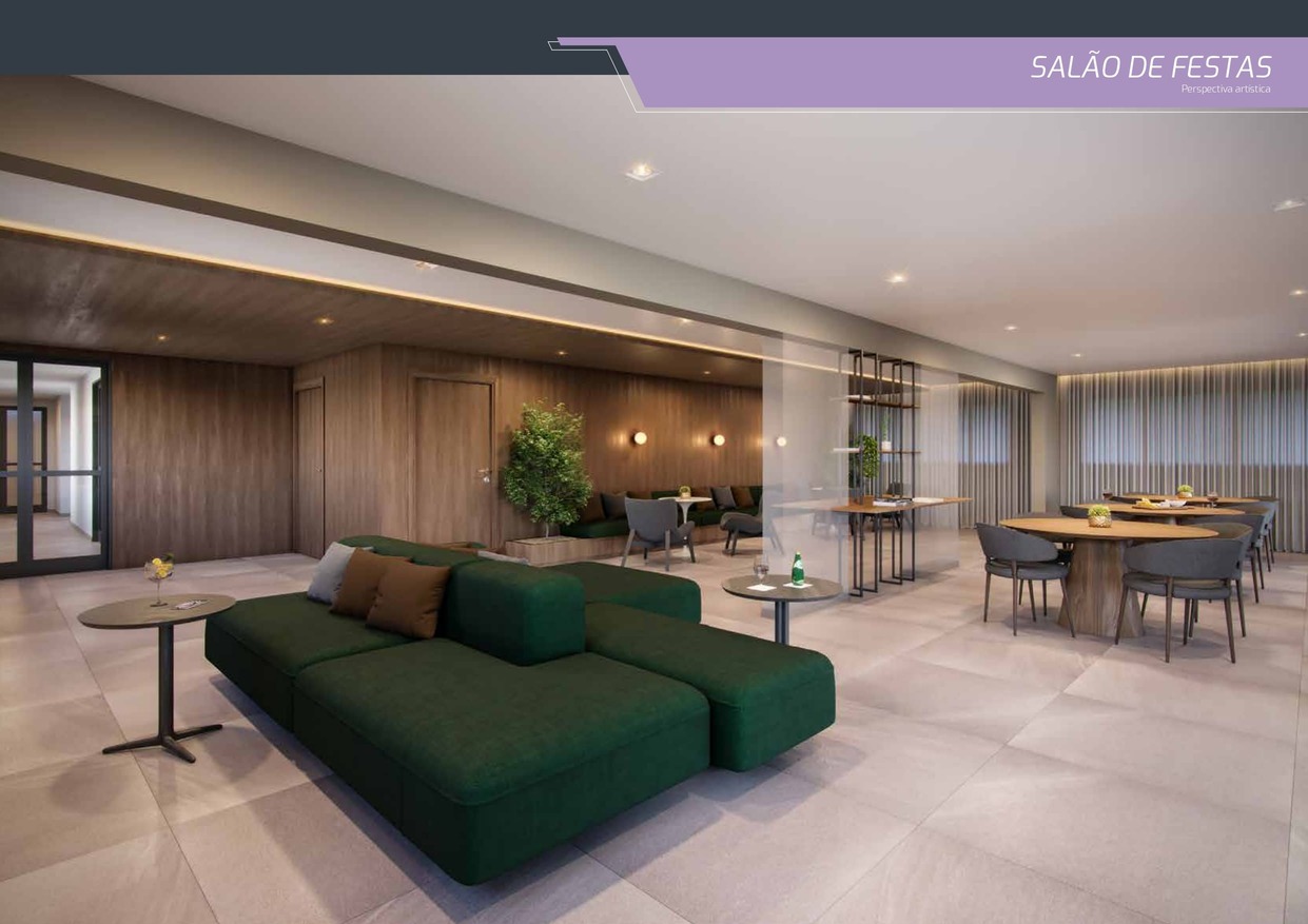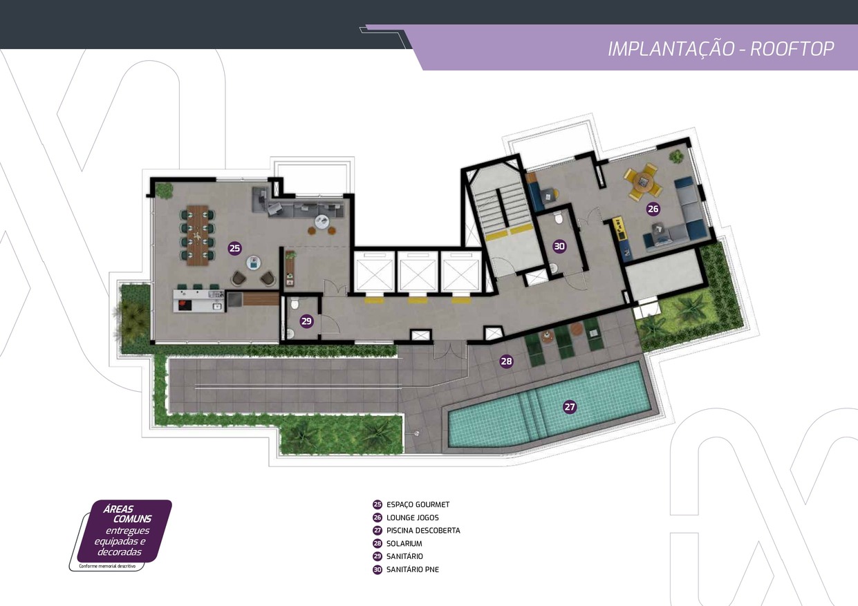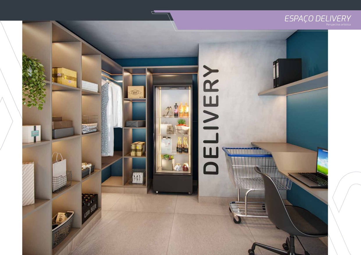 Térreo: Lobby residencial, espaço para delivery, fitness, SPA com sauna úmida, ducha e área de descanso, além de piscina com raia.