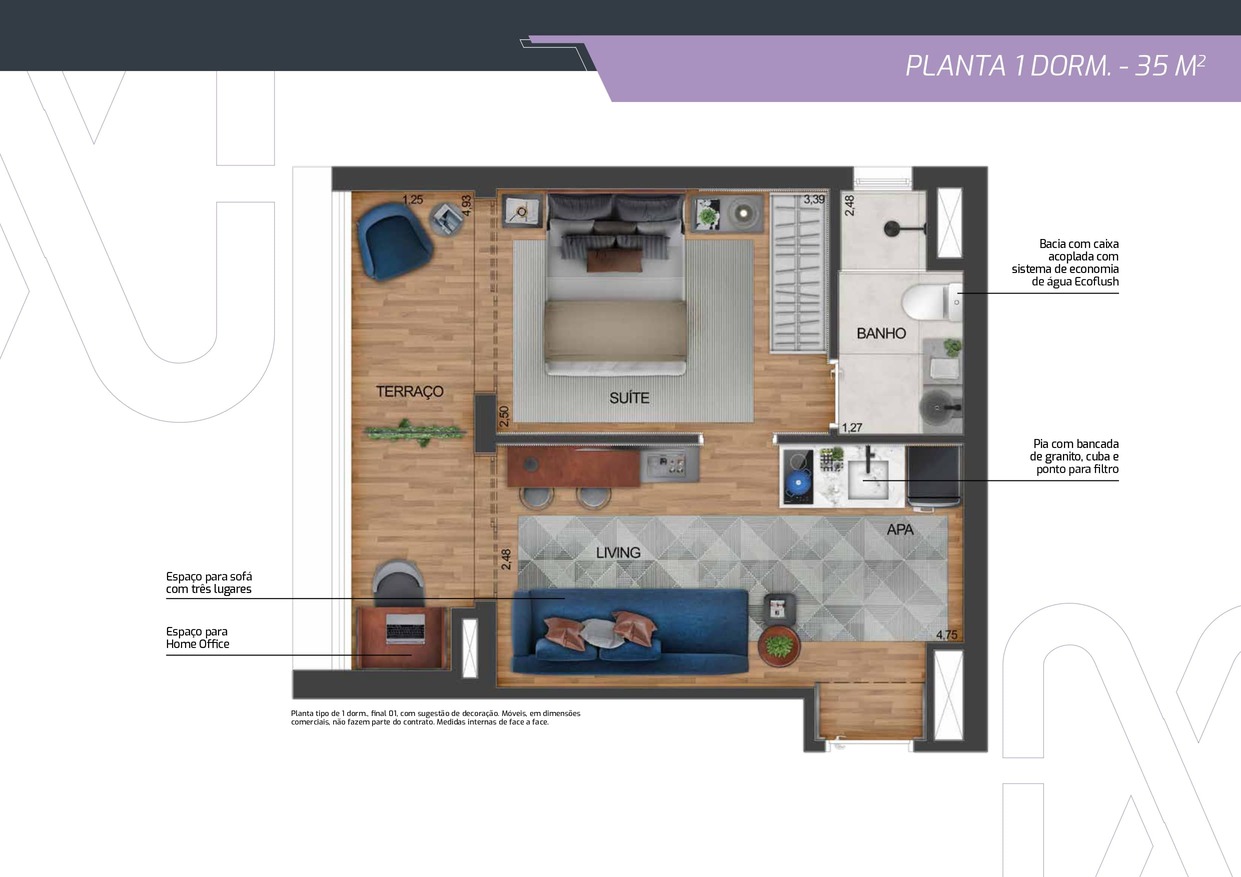 Unidade 1805 – 22,63m² | Sem vaga | R$ 461.519,00